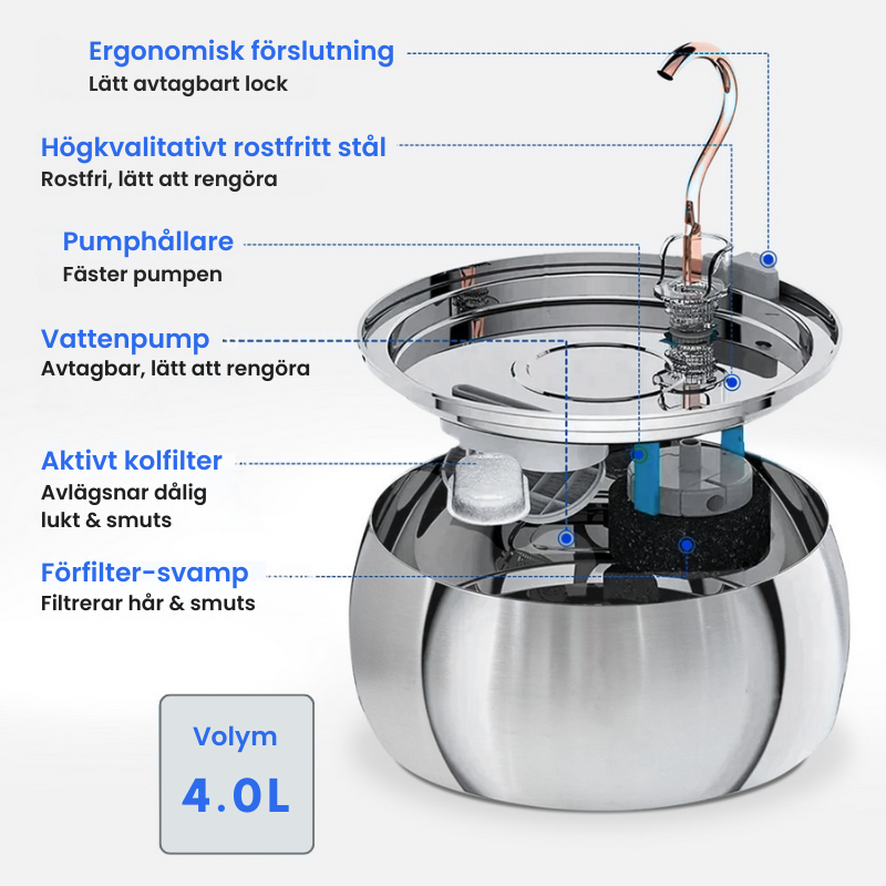 Upplevde att vattnet höll sig friskt längre tack vare den rostfria ytan och det inbyggda filtreringssystemet.